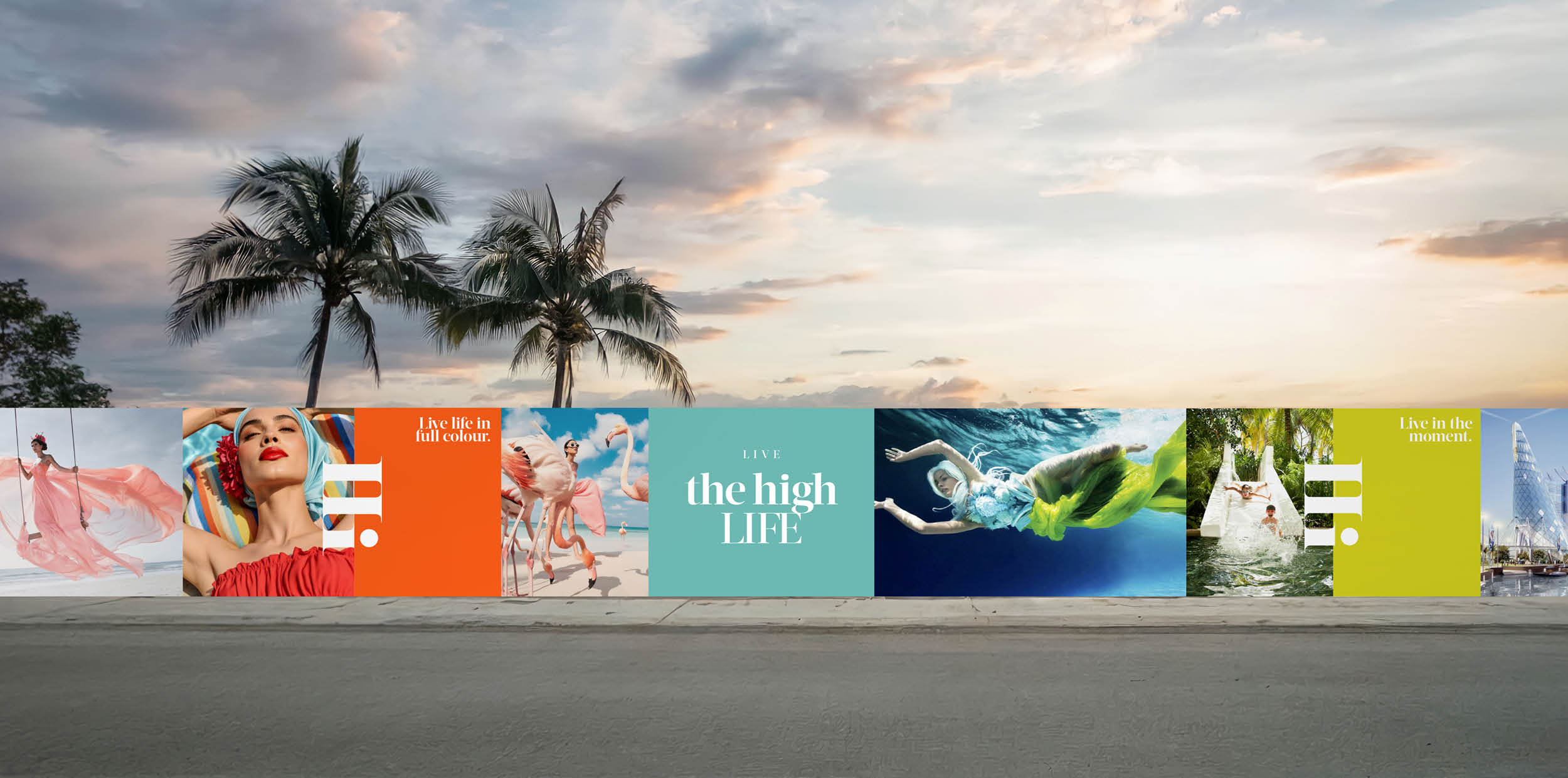 The visual and verbal identity draws directly from nature, culture and light. Bold colour palettes, expressive imagery and confident typography work together to create a brand language that feels joyful, modern and unmistakably alive, reflecting the spirit of island living.