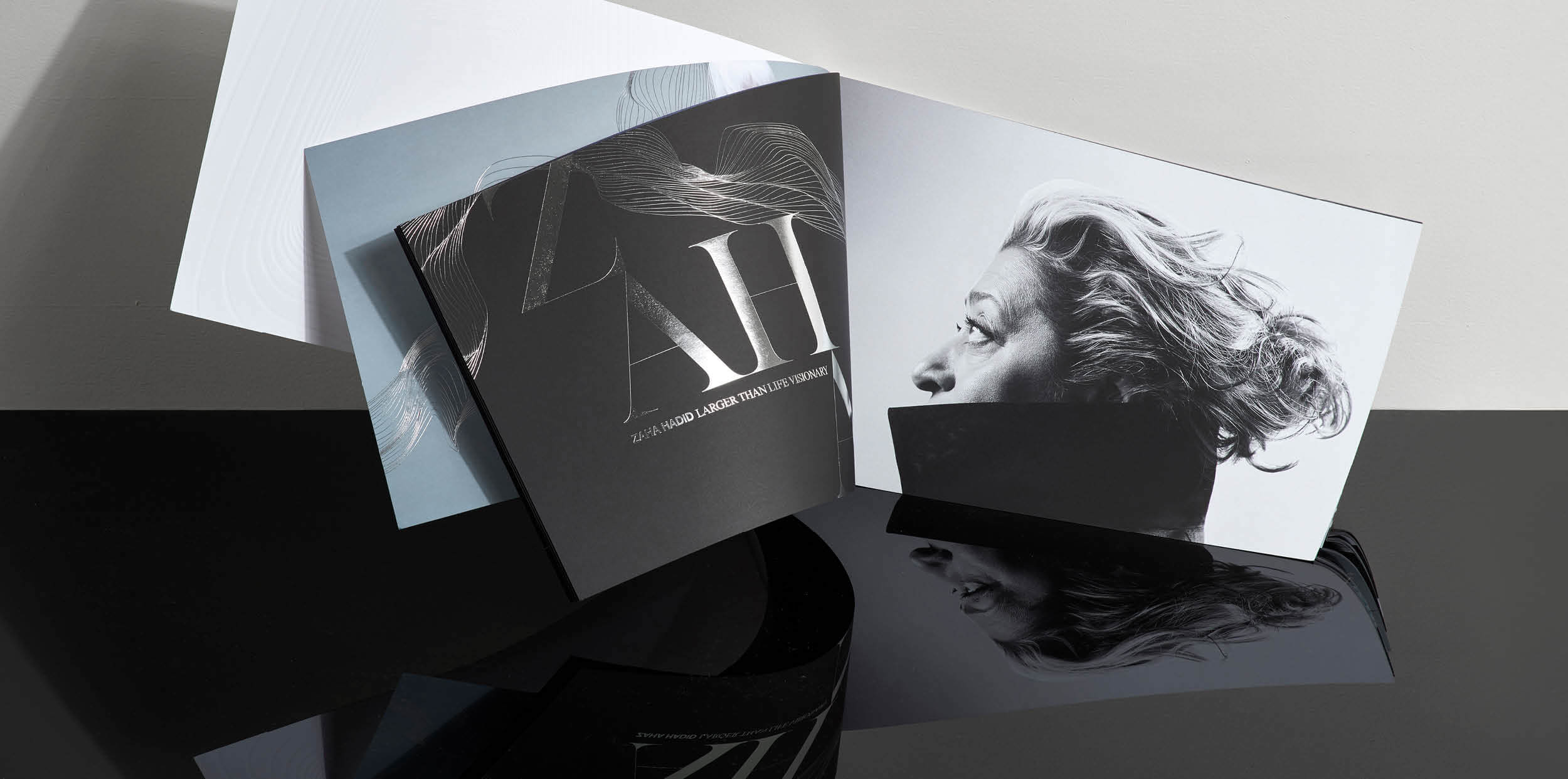 Visual and verbal expressions were developed as extensions of Hadid’s philosophy. Typography became a central unifying device, inspired by her fluid forms, natural curves and the interplay of light and shadow that defines the building’s void. Imagery, language and composition were treated as works of art in their own right, mirroring the architectural ambition of the structure itself.